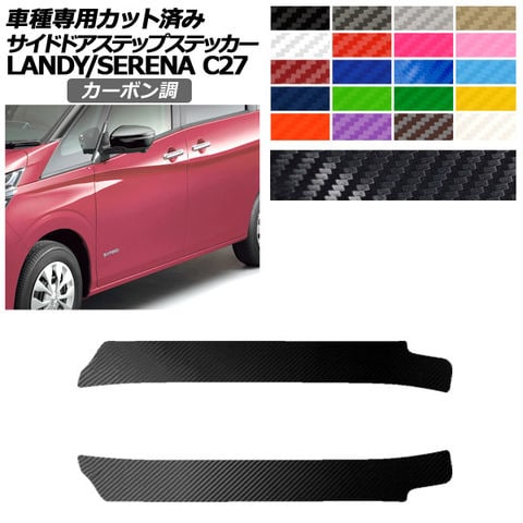 サイドドアステップステッカー 日産 スズキ セレナ ランディ C27 SC27 後期 カーボン調 選べる20カラー 入数:1セット(2枚) AP-PF2CF0049
