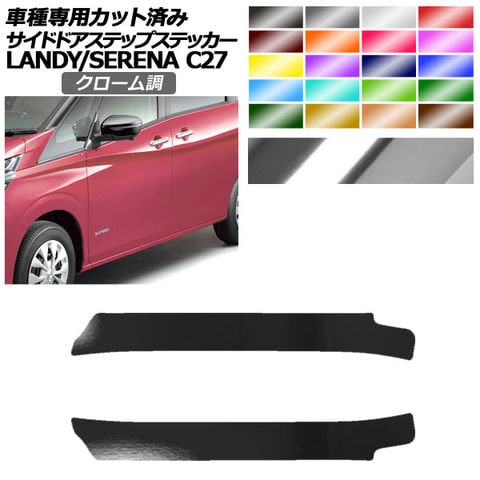 サイドドアステップステッカー 日産 スズキ セレナ ランディ C27 SC27 後期 クローム調 選べる20カラー 入数:1セット(2枚) AP-PF2CRM0049