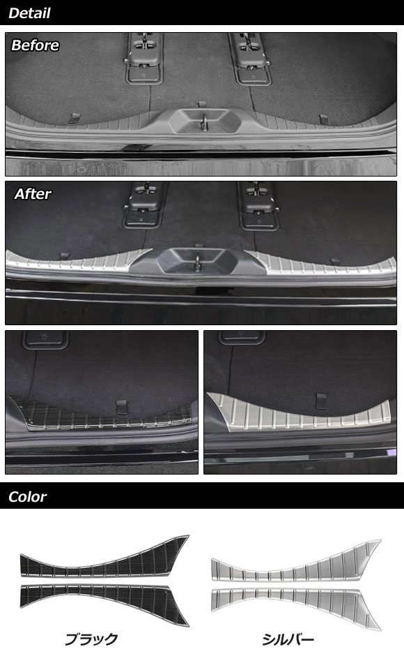 キッキングプレート ステップガード キックプレート リアバンパーステップガード ステッププレート プレート スカッフプレート シルプレート エントランスモールプレート エントランスモール トランク ラゲッジ ラゲージ リアゲート リア リヤ リヤー リアー バックドア ドア ゲート 荷台 荷室 ステップ シル スカッフ キッキング 内側 車内 ガーニッシュ リム トリム ベゼル カバー プロテクト プロテクター 傷予防 傷付き防止 保護 ガード ステンレス ステン 鋼 銀 SILVER クローム CHROME 内装 内装パーツ パーツ インテリア