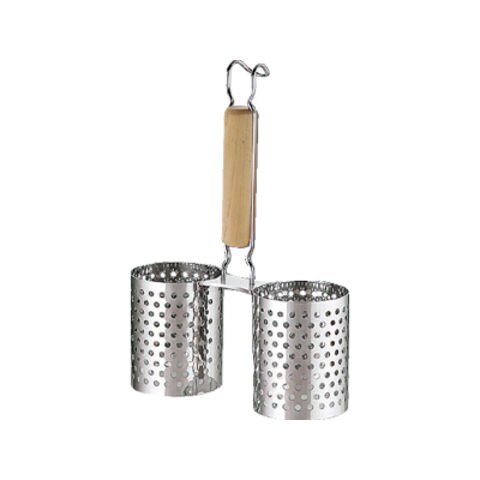 UK 18-8 パンンチング木柄かき揚げリング 2連 S (070463-001)