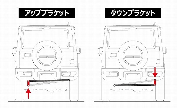 補正ブラケットには、ホーシング側の取り付け位置を上げるラテラルアップブラケットと、車体側の取り付け位置を下げるラテラルダウンブラケットがあります。