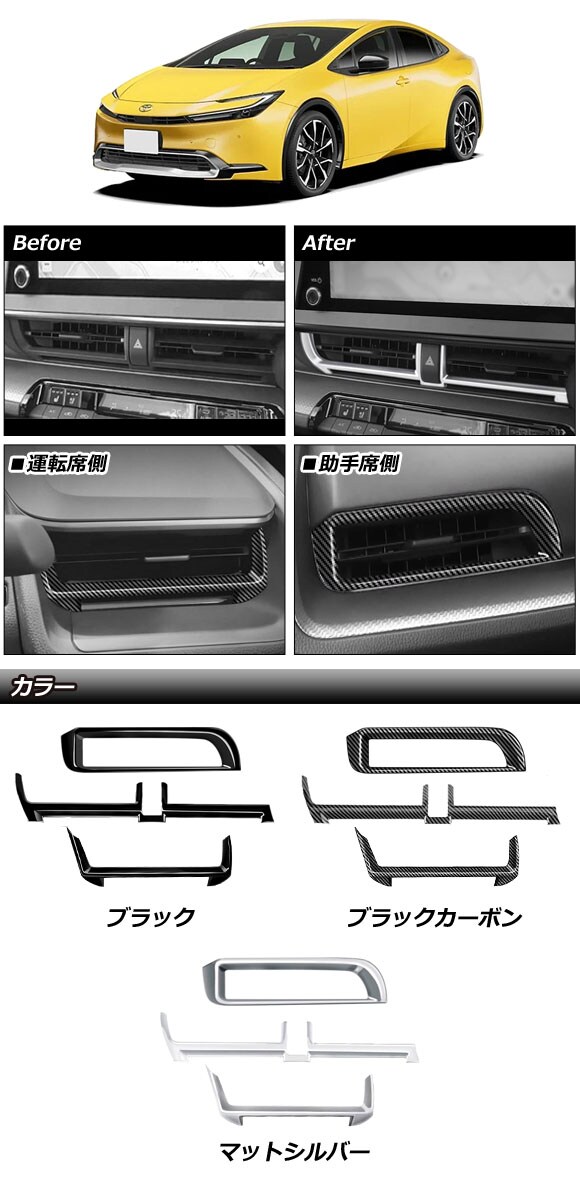 エアコンダクトカバーセット トヨタ プリウス 60系 2023年01月~ ブラック ABS製 入数:1セット(3個) AP-IT3342-BK