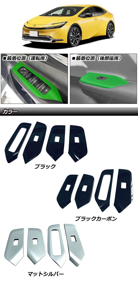 パワーウインドウスイッチカバー トヨタ プリウス 60系 2023年01月~ ブラック ABS製 入数:1セット(4個) AP-IT3360-BK