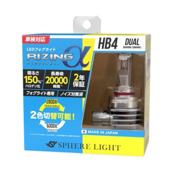スフィアライト(Spherelight) RIZINGアルファ LEDフォグライト 6000K/2800K デュアルカラー HB4 日本製 SRACHB4D