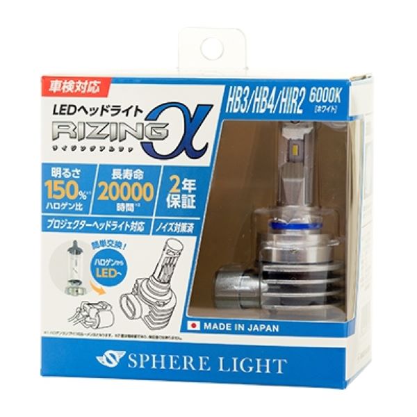スフィアライト(Spherelight) RIZINGアルファ LEDヘッドライト 6000K HB3/HB4/HIR2 日本製 SRACHB060-02