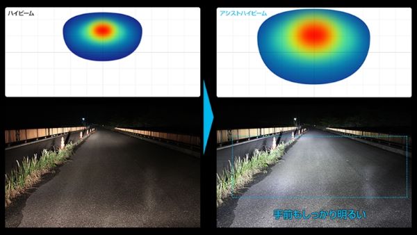 特筆すべきは、配光の美しさ。LEDヘッドライトが陥りがちな照度の偏りを抑え、ムラのない光が視界一杯に広がります。