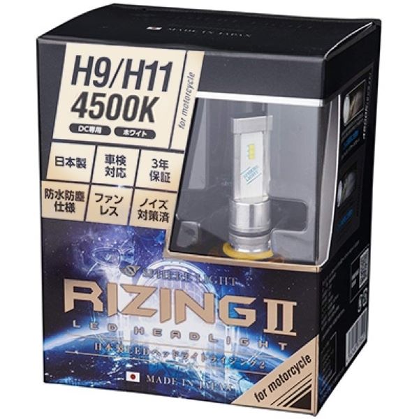 スフィアライト(Spherelight) RIZING2 LEDヘッドライト 4500K H9/H11 バイク用 SRBH9045-02 2輪