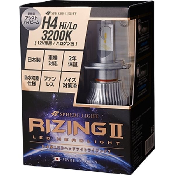 スフィアライト(Spherelight) RIZING2 LEDヘッドライト 3200K H4 Hi/Lo 12V用 日本製 SRH4A032-02