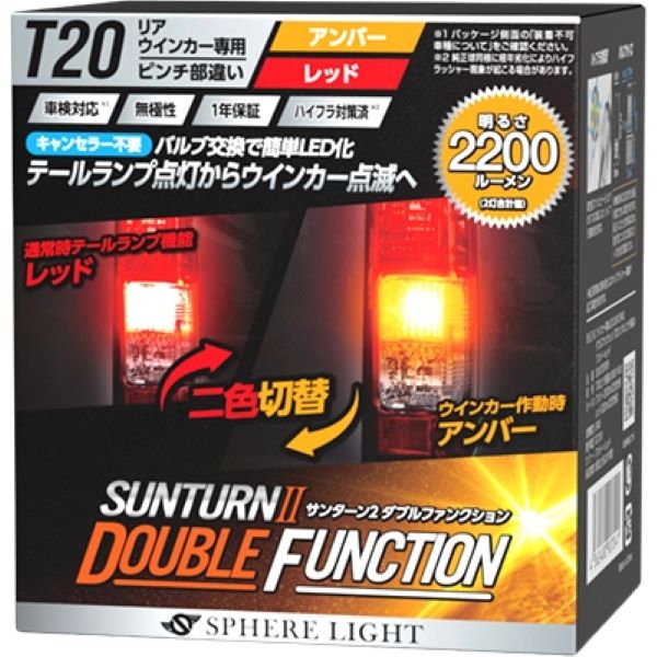 スフィアライト(Spherelight) SUNTURNII ウインカー専用LED アンバー×レッド T20シングル ピンチ部違い リア用 SUNT20PDR