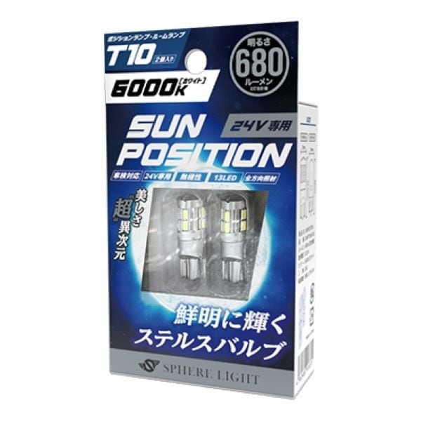 スフィアライト(Spherelight) SUNPOSITION ポジション・ルームランプ専用LED 6000K 24V T10 入数:1セット(2個入) SUNPT1060-24V
