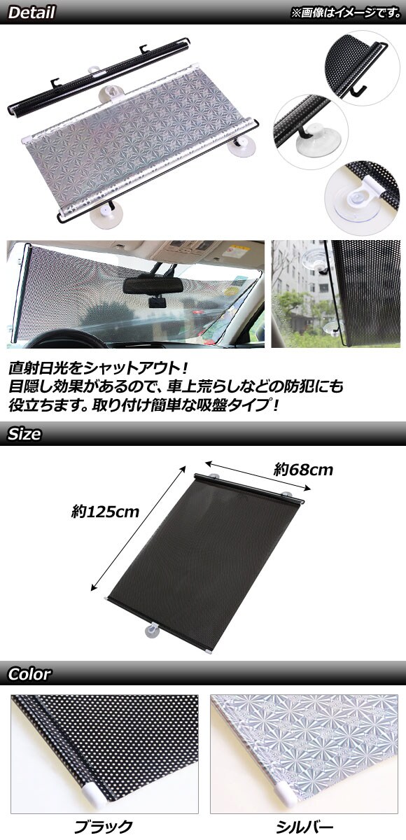 格納式サンシェード 68×125cm 吸盤タイプ 汎用 選べる2カラー AP-SD274-68CM