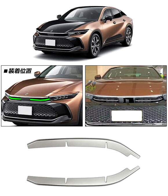 フロントヘッドグリルカバー トヨタ クラウンクロスオーバー 35系 2022年09月~ シルバー ステンレス製 入数:1セット(2個) AP-FG628
