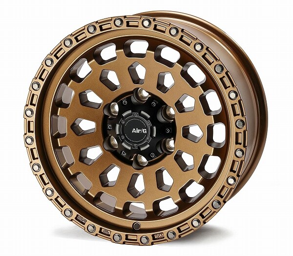 Air/Gシリーズ共通のアーバンオフスタイルを踏襲しながら、本格オフロードスタイルを彷彿とさせるディスクデザインで設計。近年のMTタイヤ、X-ATタイヤ、RTタイヤなどオフロード用タイヤの多くは、サイドウォールの立体感が強調されています。Air/G VULCAN(ヴァルカン)は、こうしたタイヤと組み合わせた際にも、ホイールとタイヤのバランスが均衡するよう、リム形状、リムからディスクへの立ち上がり部の形状、コンケイブしたディスク形状の全てにおいて、立体感のあるデザインを採用しました。また、ホイールのリム(外周)部分にはシルバーのリムボルトを多数配置し、ホイールの存在感を増しています。近年のオーバーランダースタイルで架装したルーフや、バンパーのボリュームが大きい車両の足元でも、Air/G VULCAN(ヴァルカン)は際立つ存在感を放ちます。