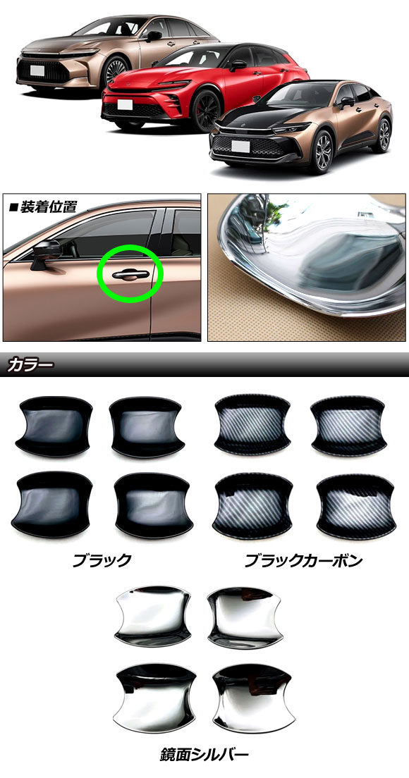 ドアハンドルインナーカバー トヨタ クラウンスポーツ 30系 2023年11月~ ブラックカーボン ABS製 入数:1セット(4個)
