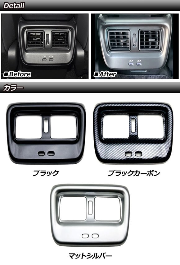 リアエアコンカバー エアコンダクトカバー エアコンカバー エアコンガーニッシュ エアコンダクトガーニッシュ エアコンベントカバー センターコンソール コンソール エアコンダクト 吹き出し口 エアコン 送風口 エアベント ベント ダクト パネル リア リアー リヤ リヤー 後部座席 後ろ 後部 アームレスト 肘掛け 肘置き カバー フレーム ガーニッシュ リム トリム ベゼル プロテクト プロテクター 傷予防 傷付き防止 保護 ガード ABS ABS樹脂 メッキ メッキパーツ 黒 BLACK 内装 内装パーツ パーツ インテリア ドレスアップ カスタム