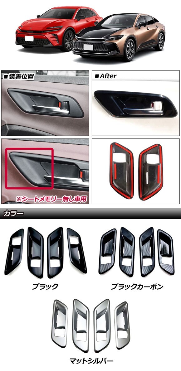 インナードアハンドルカバー トヨタ クラウンスポーツ 30系 シートメモリー無し車 2023年11月~ マットシルバー ABS製 入数:1セット(4個)