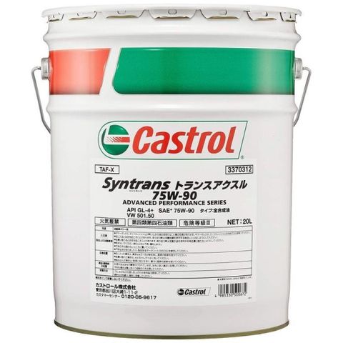 カストロールジャパン Castrol Japan ギアーオイル ギヤーオイル ギヤオイル ギヤー ギヤ ギアー ギア GEAR OIL 潤滑油 油膜形成剤 TRANSMAX MANUAL TRANSAXLE マニュアルトランスミッション MT FF車 兼用 低温流動性 低温 省燃費 SYNTRANS 75W90 20リットル 20L缶