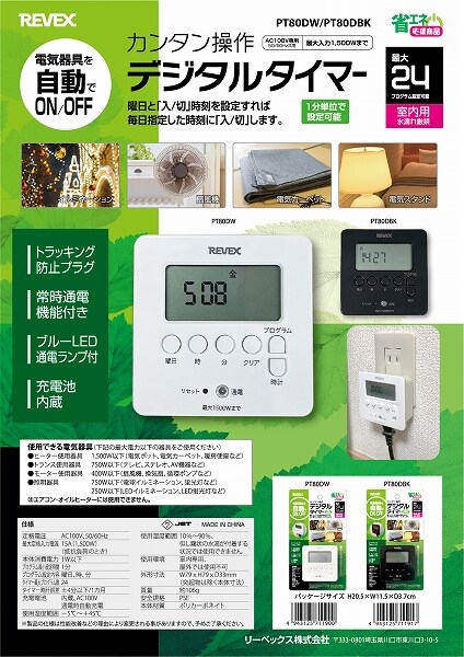 リーベックス/REVEX デジタルタイマー ホワイト PT80DW