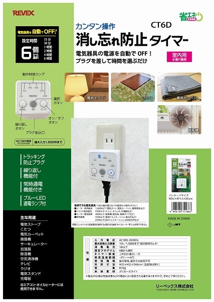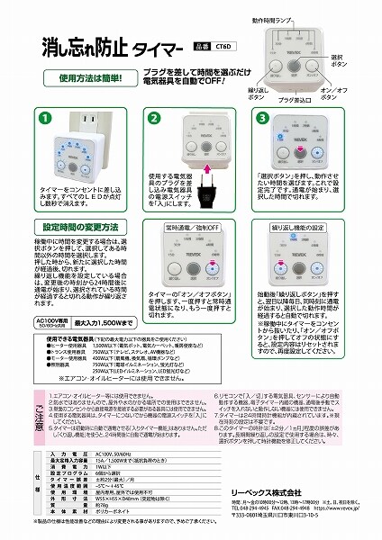 リーベックス/REVEX 消し忘れ防止タイマー カンタン操作 CT6D
