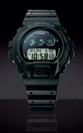 様々なコラボレーションモデルに採用され、ストリートファッションなどで人気のDW-6900が、世界6局の標準電波を受信するマルチバンド6を搭載。デザイン・ケース径はそのままに、電波ソーラー化を実現しました。蛍光灯のわずかな光で駆動し、日本(2局)、中国、アメリカ、イギリス、ドイツの6局の標準電波を受信します。また、液晶を従来モデルより大きくし、視認性を向上させました。シンプルなカラーリングで、ベーシックなデザインに仕上げています。