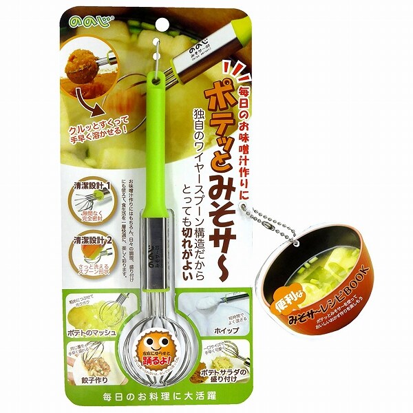 nonoji ノノジ ポテっとみそサー ポテッとみそさ~ ワイヤー スプーン 計量 味噌マドラー みそ溶き 味噌溶き 泡立て器 ホイッパー 味噌汁 餃子 マッシュポテト 緑