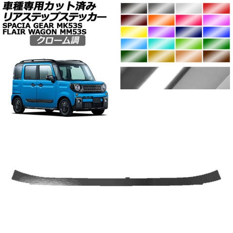 リアステップステッカー マツダ スズキ フレアワゴンタフスタイル スペーシアギア MM53S MK53S クローム調 選べる20カラー AP-PF2CRM0087