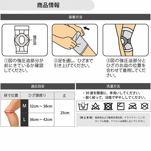 「お皿」を包み込むように上下左右から圧迫し、ひざを曲げる・伸ばす・歩く等の動きをちゃんとアシストします。