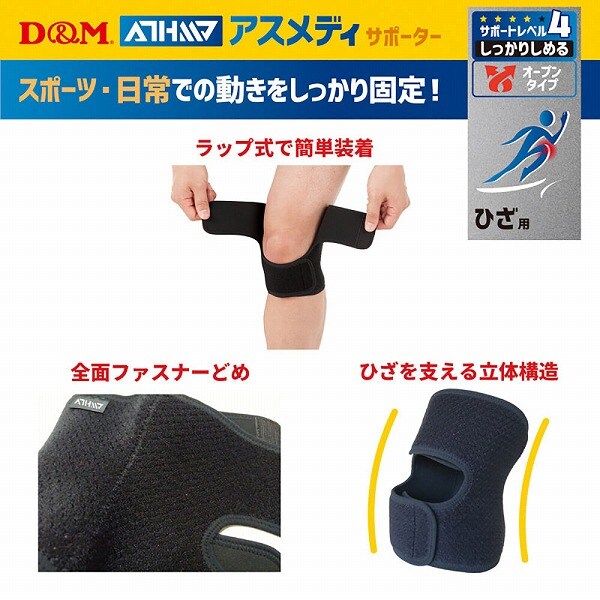 ディーエム ひざ用サポーター 膝用サポーター ヒザ用サポーター ひざ用 膝用 ヒザ用 ひざ 膝 ヒザ サポート ラップタイプ 面ファスナー マジックテープ スポーツ 日常 レジャー けが予防 フリーサイズ しっかり固定 サポートレベル4 黒 BLACK ATHMD