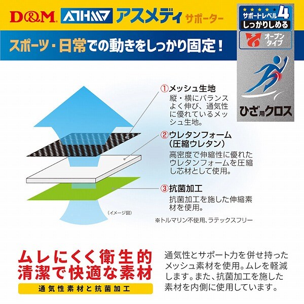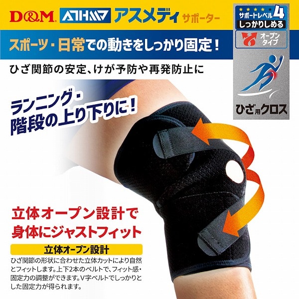 D&M/ディーアンドエム アスメディ サポーター しっかりしめる ひざ用クロス ブラック オープンタイプ レベル4 108656