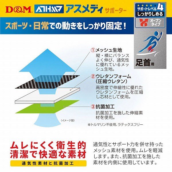 D&M/ディーアンドエム アスメディ サポーター しっかりしめる 足首用 ブラック オープンタイプ レベル4 108663