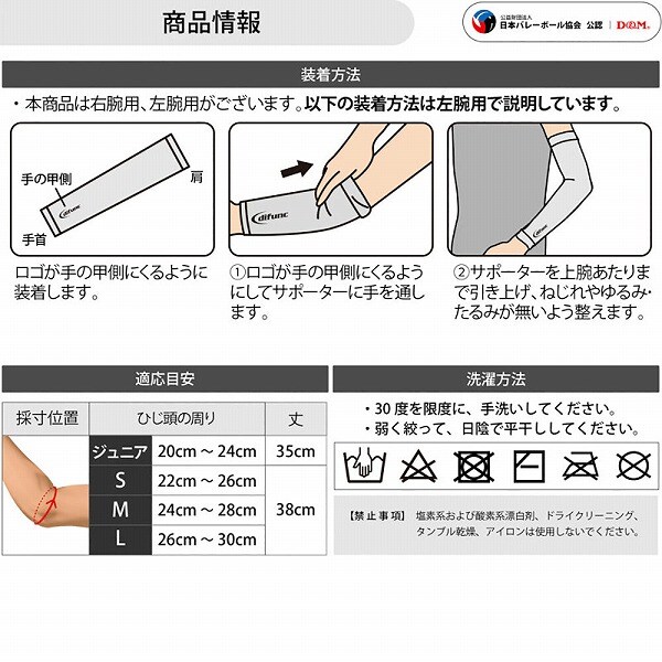 サイズ目安(ひじ頭周り):【Sサイズ】22~26cm【Mサイズ】24~28cm【Lサイズ】26~30cm