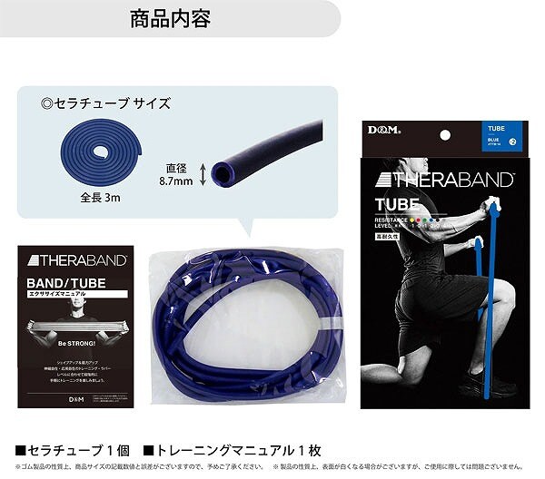 ディーエム THERABAND TUBE セラバンドチューブ エクササイズチューブ トレーニングチューブ エクササイズバンド トレーニングバンド ゴムバンド バンド トレーニング用 エクササイズ用 リハビリ用 リハビリ用品 リハビリ トレーニング トレーニング用品 筋トレ スポーツ ダイエット ワンカットサイズ 3メートル ブリスターパック 青 BLUE