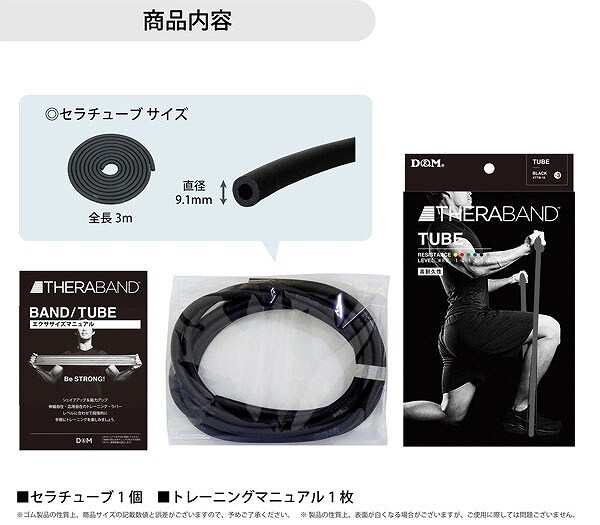 ディーエム THERABAND TUBE セラバンドチューブ エクササイズチューブ トレーニングチューブ エクササイズバンド トレーニングバンド ゴムバンド バンド トレーニング用 エクササイズ用 リハビリ用 リハビリ用品 リハビリ トレーニング トレーニング用品 筋トレ スポーツ ダイエット ワンカットサイズ 3メートル ブリスターパック 黒 BLACK