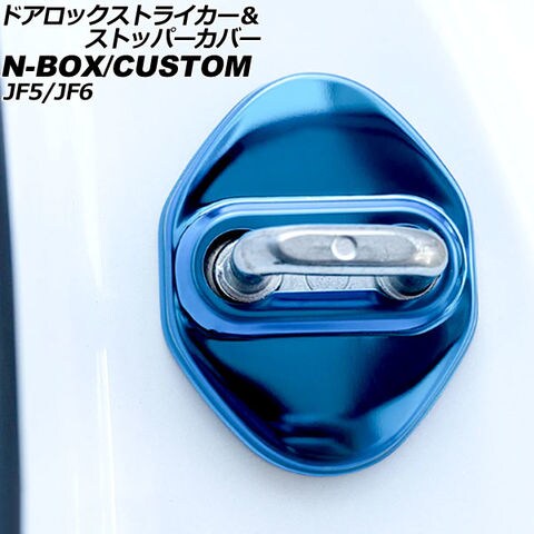 ドアロックストライカー&ストッパーカバー ホンダ N-BOX/N-BOXカスタム JF5/JF6 2023年10月~ ブルー ステンレス/ABS製 入数:1セット(4個) AP-IT3544-BL