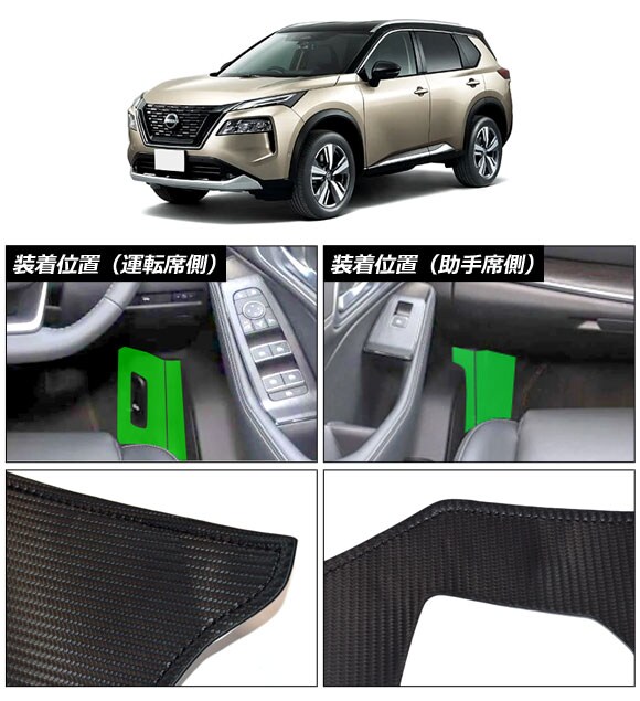 フロントサイドキックガード 日産 エクストレイル T33系 2022年07月~ ブラックカーボン PUレザー製 入数:1セット(4個) AP-IT3279-BKC