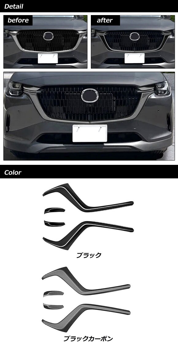 フロントグリルガーニッシュ マツダ CX-60 KH系 2022年09月~ ブラック ABS樹脂製 入数:1セット(4個) AP-FG638-BK