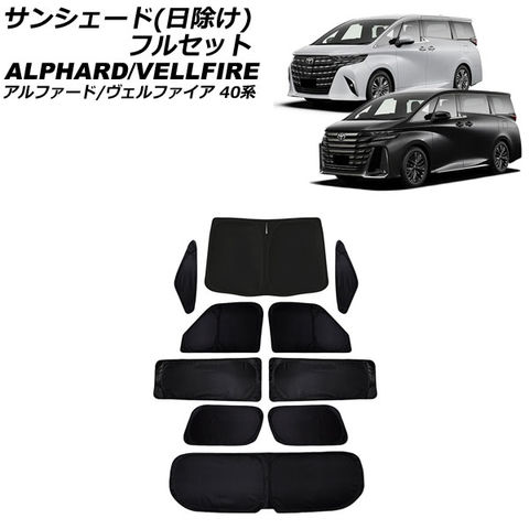 サンシェード(日除け) トヨタ アルファード/ヴェルファイア 40系 2023年06月~ 表裏2重ブラック 入数:1台分フルセット(10個) AP-SD372-A