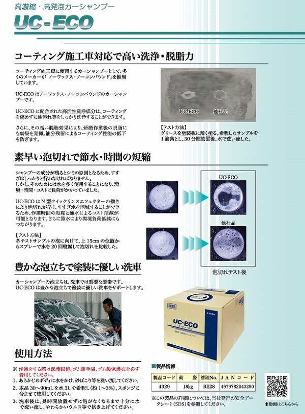 豊かな泡立ちと素早い泡切れで塗装に優しく、洗車時の節水・時間の短縮が図れます。