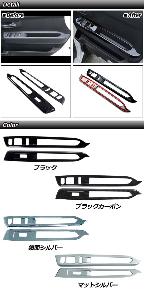 パワーウインドウスイッチカバー スバル サンバーバン S700系 2022年01月~ 鏡面シルバー ABS製 入数:1セット(2個)