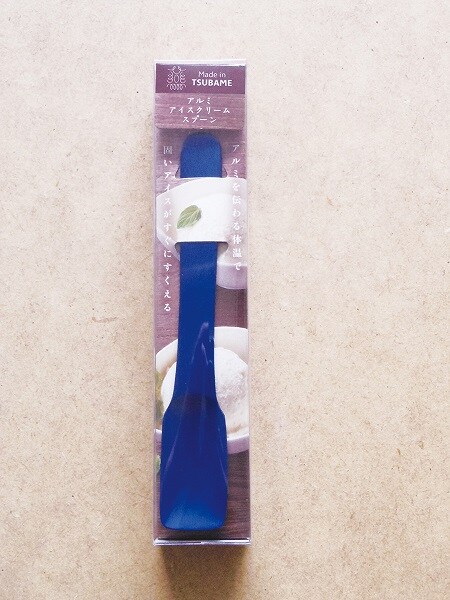 熱伝導の良いアルミ製で体温が伝わり固いアイスも食べやすい。「メイド・イン・ツバメ」マーク入り。