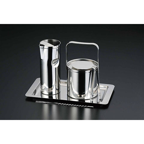 清潔感と高級感のあるステンレス製のウォーターポットとアイスペールにトレーをセットしました。大人のリラックスタイムを演出します。