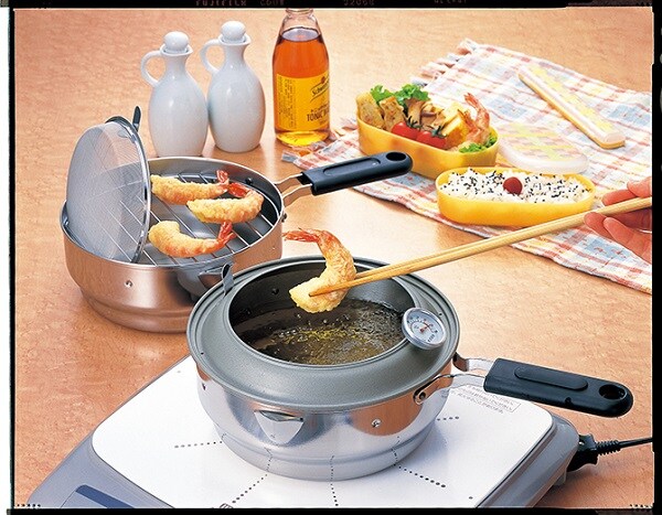 ステンレス製なので衛生的に使えます。オールインワン設計の揚げ物には最適です。濾しアミが細かいので天カスも取れる。