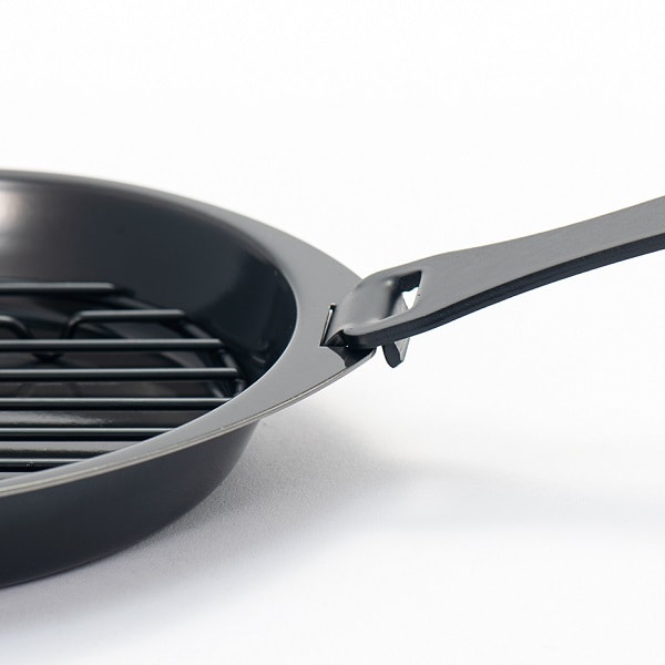 使い方いろいろ!5つの機能を備えた便利鍋。この鍋一つで、「揚げる」、「バット機能」、「オーブン」、「焼く」、「フタ」の5つの機能が使えます。「オーブン」、「焼く」機能ではそのまま食卓でも使えます。5つの機能がコンパクトに収納されていますので、場所も取りません。