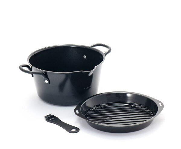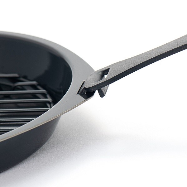 使い方いろいろ!5つの機能を備えた便利鍋。この鍋一つで、「揚げる」、「バット機能」、「オーブン」、「焼く」、「フタ」の5つの機能が使えます。「オーブン」、「焼く」機能ではそのまま食卓でも使えます。5つの機能がコンパクトに収納されていますので、場所も取りません。
