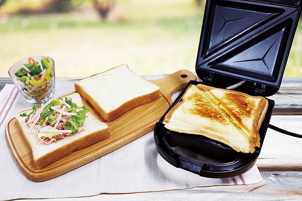 食パンの耳まではさんで焼ける!耳を切る手間が不要です。耳までカリッとしっかり焼けるのでクラムとクラストの食感の違いを楽しめます。焼きたての、サックリとしたホットサンドをご家庭で作れます。