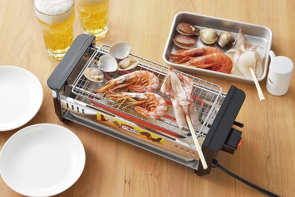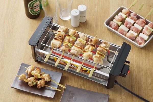 調理済みの焼鳥はもちろん、生肉からでも本格的な美味しい焼鳥が楽しめます。ディスプレイ性はもちろん、温め直しやライブ感を愉しんでいただけます。ガスコンロの直火と違い、串が焦げることがなくじっくりと丁寧に焼き上げます。網付で角モチやホタテなどの海産物も調理できるため晩酌のお供にピッタリ。