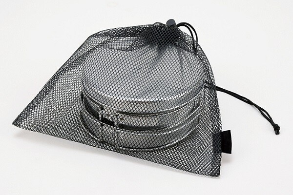 サビに強く耐久性のあるステンレス製のクッカーです。アウトドアに必要なアイテムを極限まで軽量コンパクトにまとめたクッカーセットです。通気性の良いメッシュ袋付で持運びもらくらく。万が一の災害時の備えにもおすすめです。