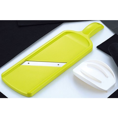 カミソリ感覚で切れ味抜群。キャベツ、タマネギ、レモン、カブ、トマト、じゃがいも等スライス、用途はいろいろです。小さめの食材に便利な安全ホルダー付き。