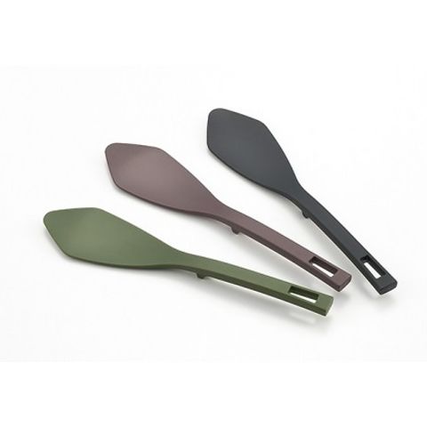フライパンやお鍋の内面加工を傷つけにくい樹脂製のキッチンツール。指をかけてしっかり握れるストッパー付。