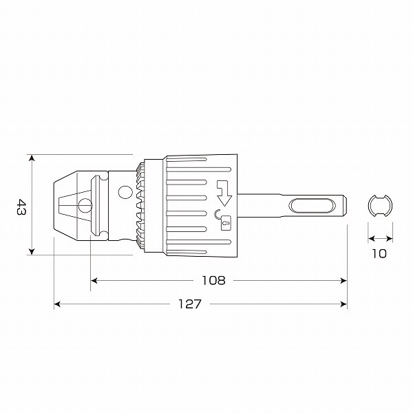 SDSプラス ハンマードリル用ドリルチャック Φ2.5~13mm 打撃(+)回転、チャックハンドル、防塵キャップ
